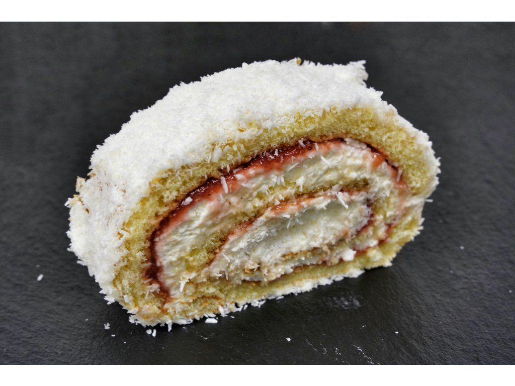 Složení: světlý roládový plát, živočišná šlehačka, marmeláda, kokos