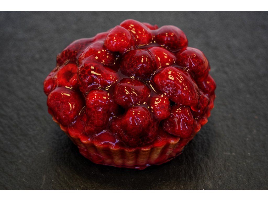 Složení: korpus, vanilkový krém, maliny, agarová poleva