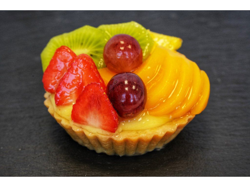 Složení: korpus, vanilkový krém, jahody, hroznové víno, ananas