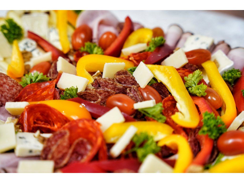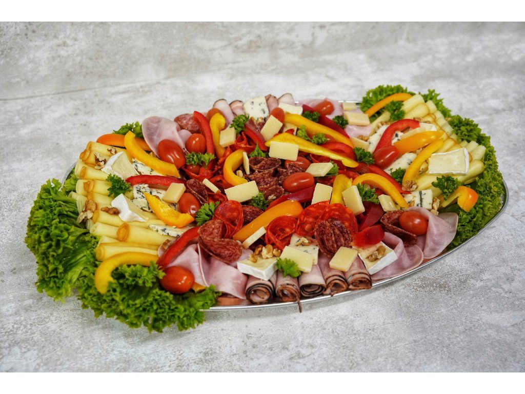složení: eidam uzený, eidam klasický, niva, parmezán, hermelín, moravské maso, šunka, herkules, debrecínka, salátová okurka, papriky, cherry rajčata, biondo, vlašské ořechy