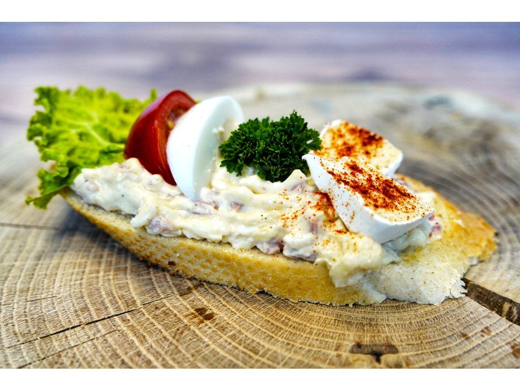 Složení: veka, hermelínový salát, biondo, kudrnka, rajče, vejce, plísňový sýr