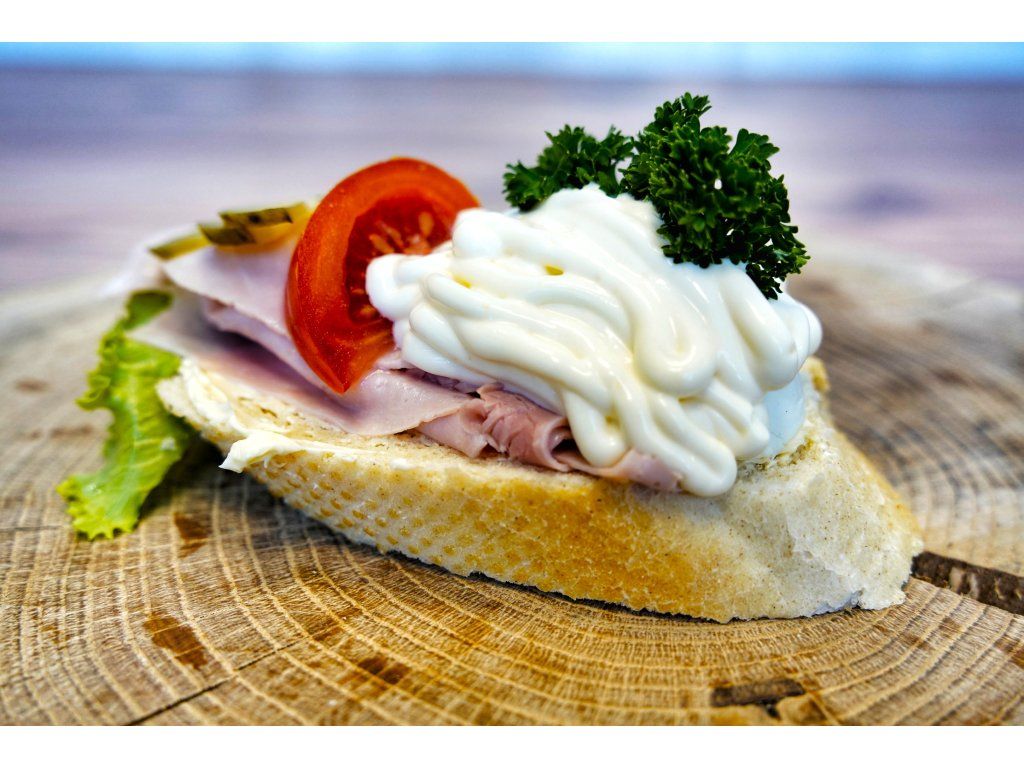 Složení: veka, máslo, biondo, kudrnka, rajče, vejce, kyselá okurka, šunka