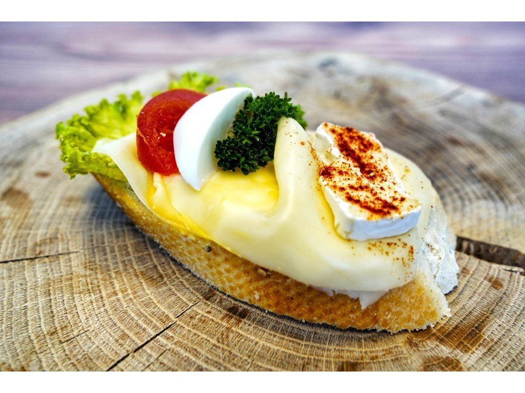 Složení: veka, máslo, biondo, kudrnka, rajče, vejce, eidam, plísňový sýr